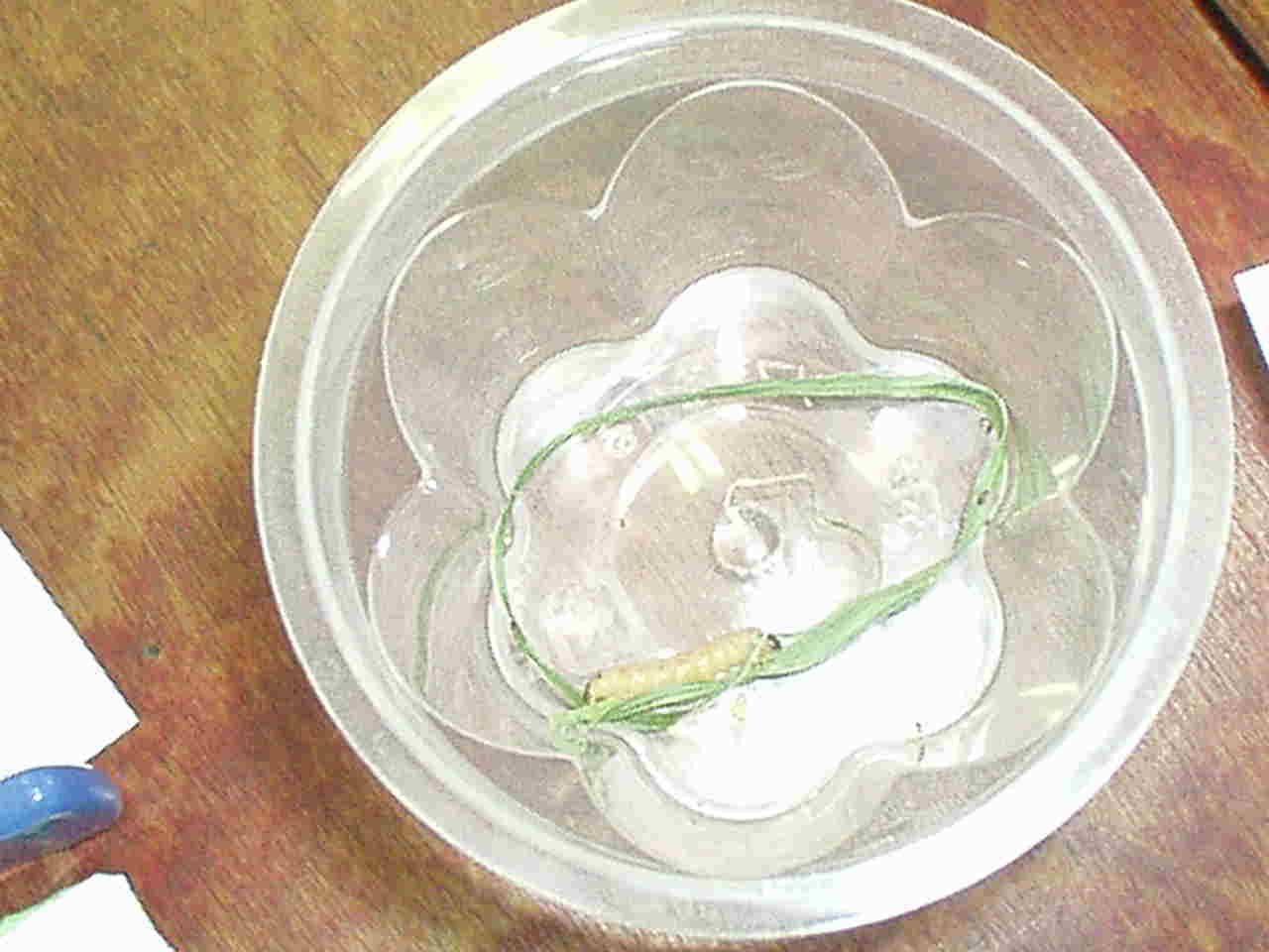 この芋虫が、とうもろこしを食い荒らした犯人だった! その名は、アワノメイガ!(写真はその幼虫) |