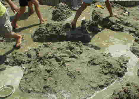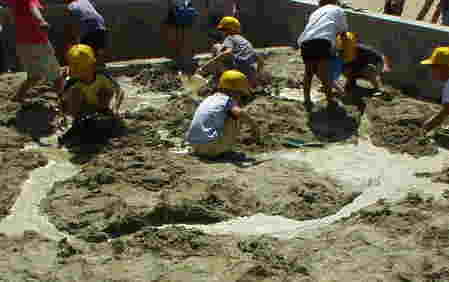 1がっきのおわりに、せいかつか「なつとあそぼう」で、どろんこあそびをしたよ。