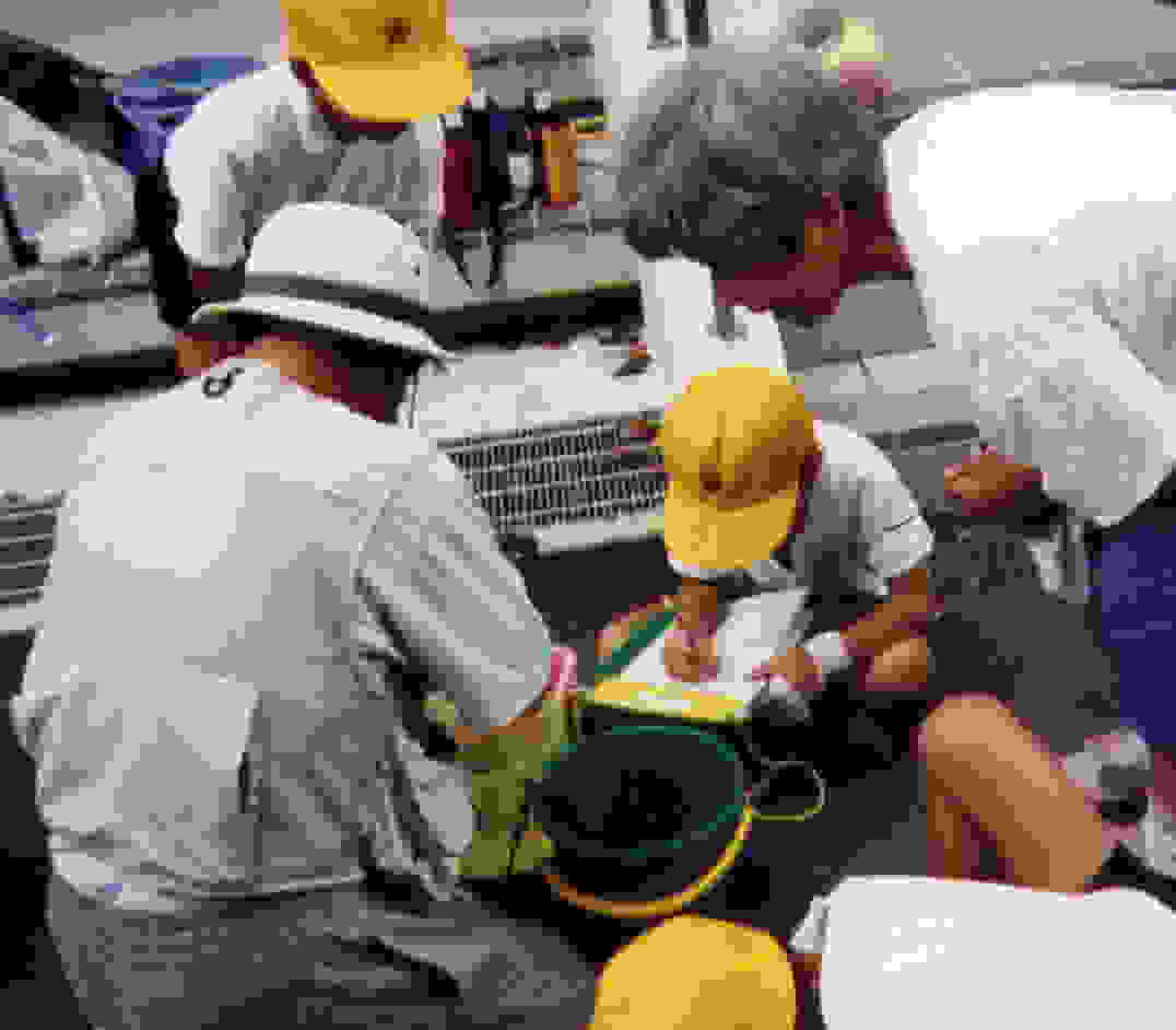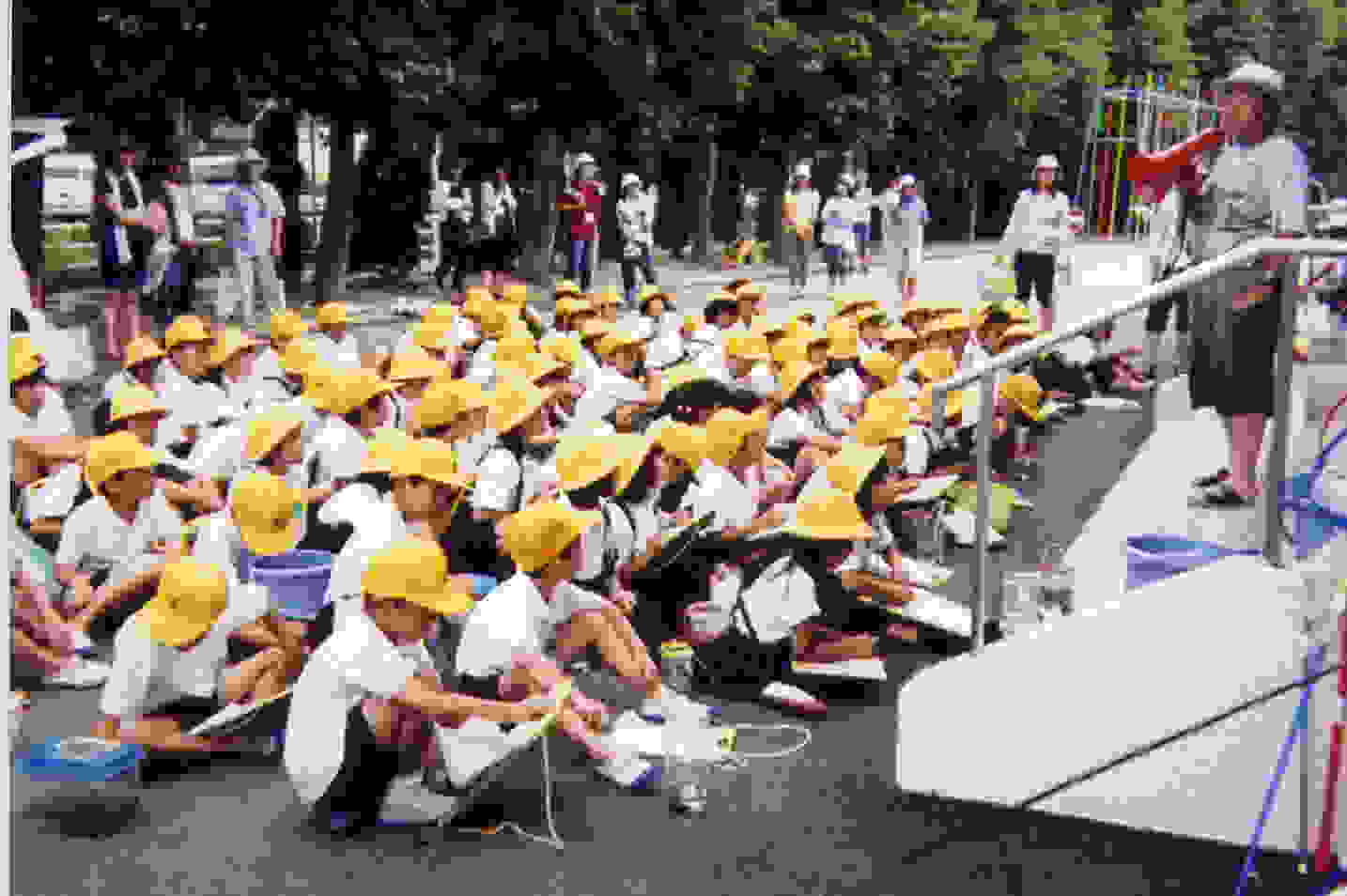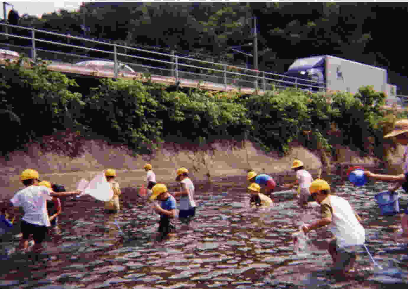 7月のある日、晴れ。 楽しみにしていた川たんけん。 水がひんやりして、とても気もちよかったよ。 あみやバケツ、水そうなどをよういしたよ。 |
