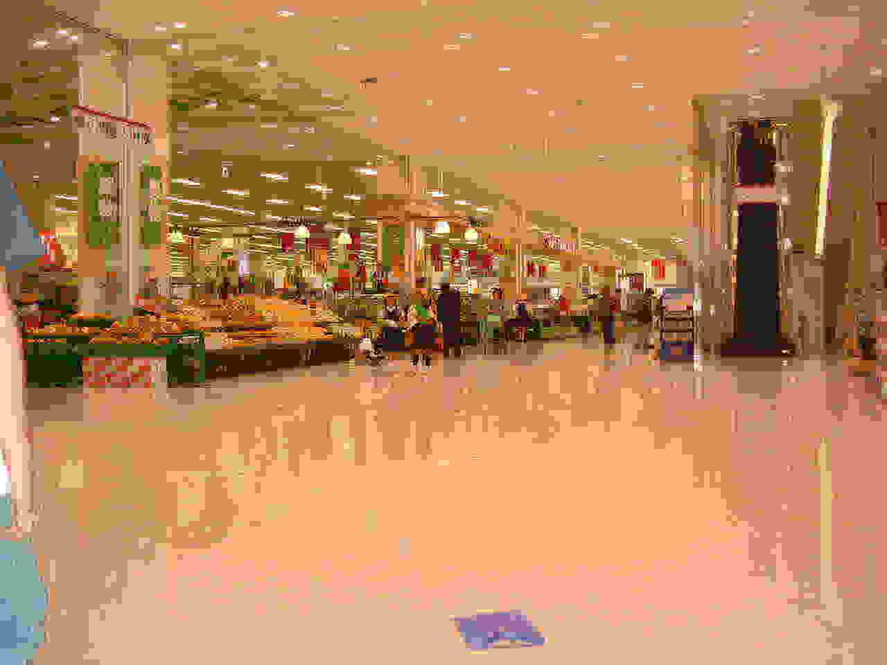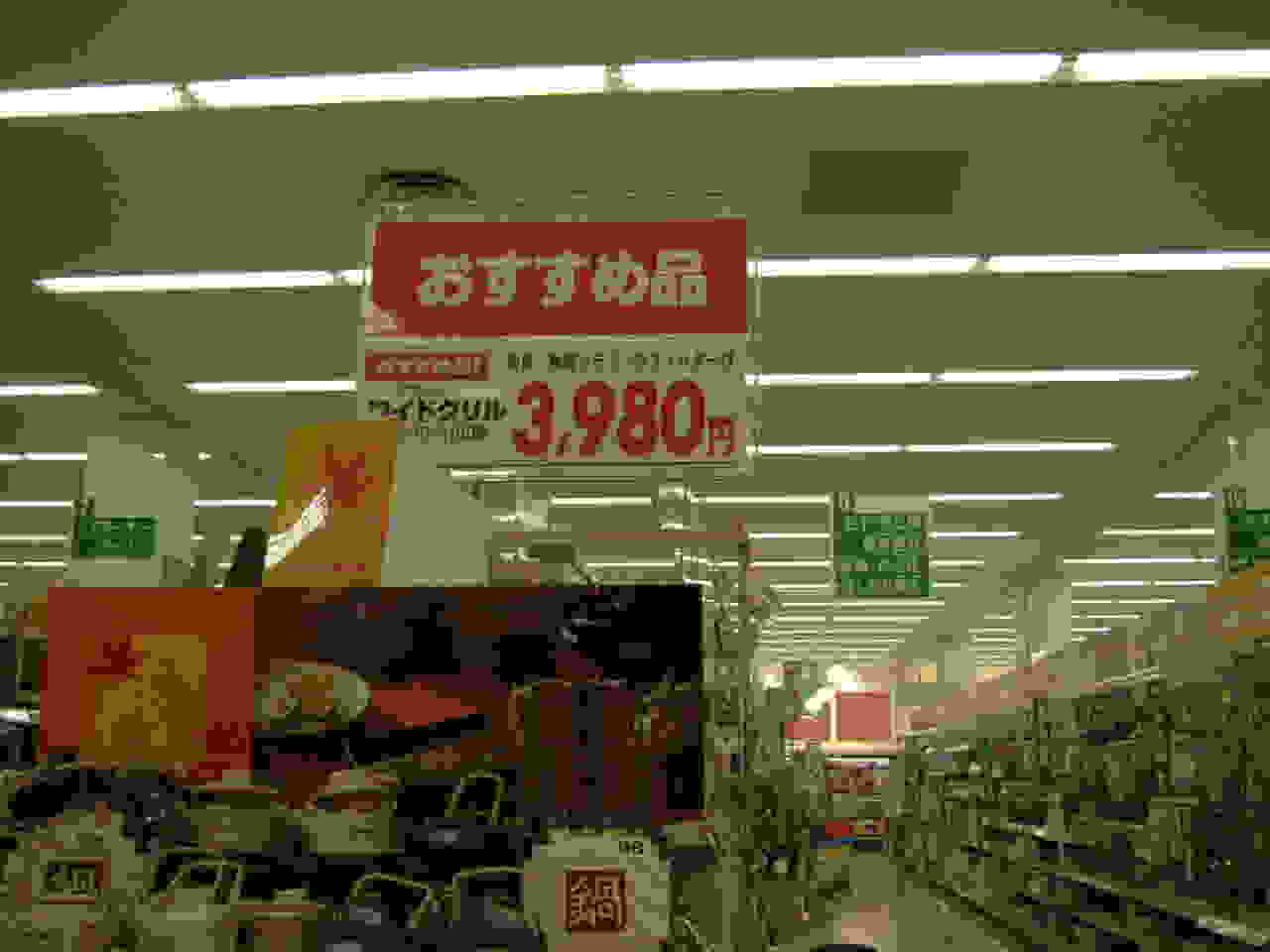 | レジがこんなにたくさんあります。 | 安売りの日があります。これだけ大きい たれまくがあると分かりやすいです。 |