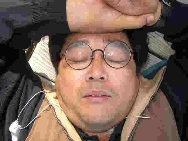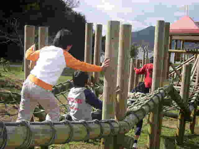 | きれいな貝落ちとる〜? | 山の手にある、アスレチックでも遊びました。 | これは、あるクラス担任のK先生の似顔絵です。 | そして、モデルのK先生。 |