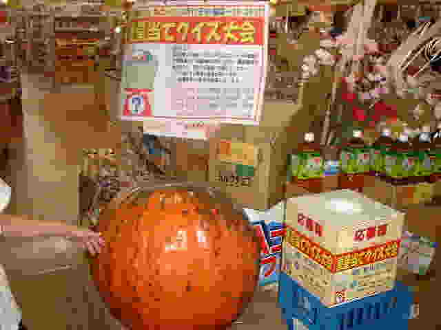 | おみせには 大きなかぼちゃがおいてあって びっくり! おもさは どのぐらいかな? |